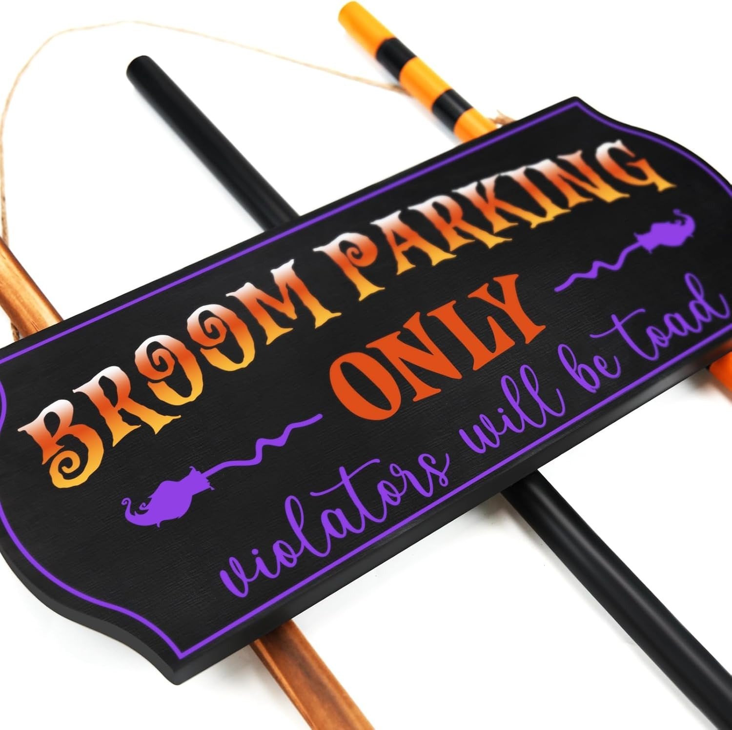 Embrace the spooky season with this enchanting Broom Parking Sign set and let your home be the talk of the town!