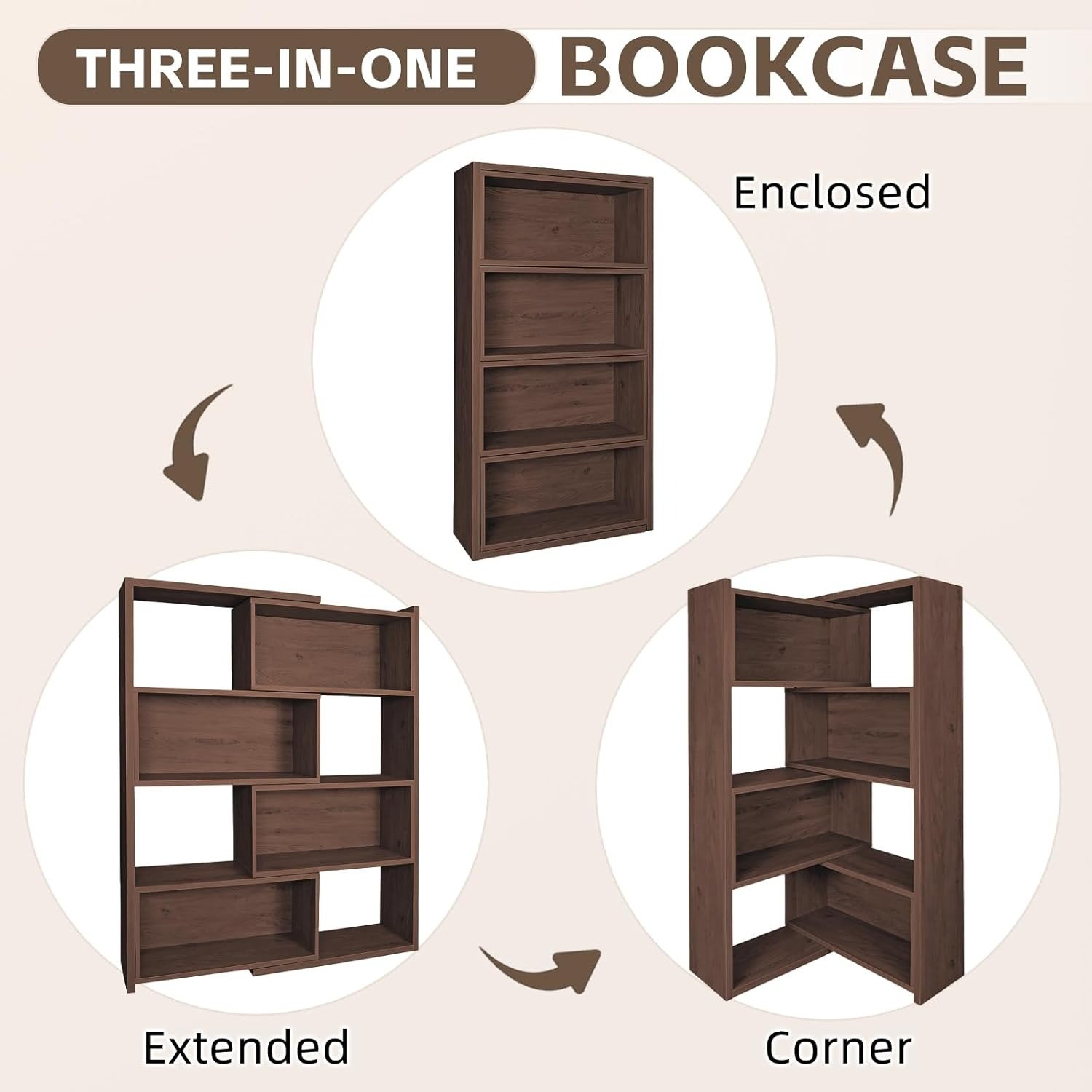Expandable 3-in-1 Corner Bookcase – 4-Tier Adjustable Shelf for Living Room & Bedroom