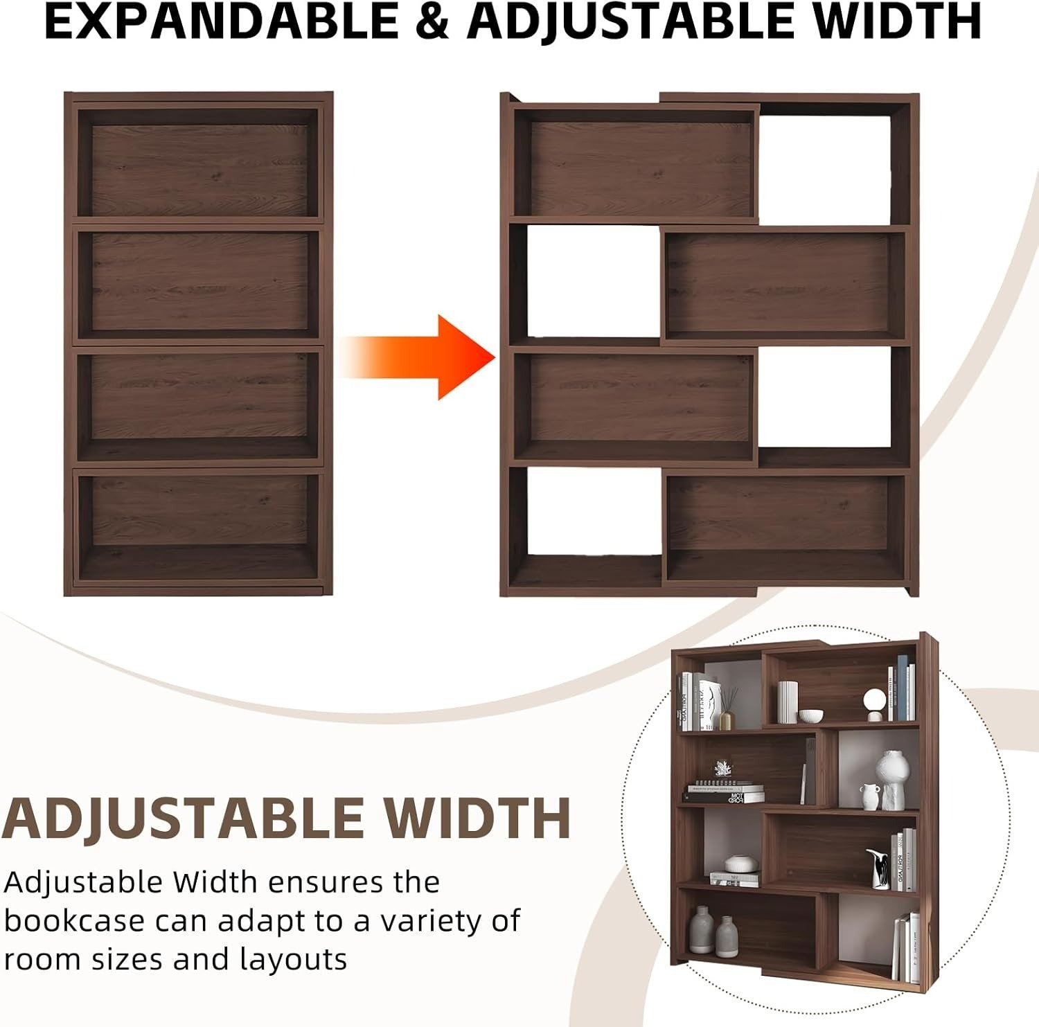 Maximize your space with the AKFJOSGE Expandable 3-in-1 Convertible Bookcase. Its innovative sliding design allows for width adjustment from 23" to 70", adapting seamlessly to your room layout. With four spacious shelves and a modern aesthetic, this bookcase offers versatile storage solutions for books, decor, and more. Perfect for living rooms, bedrooms, or home offices. Explore its adaptable design today.